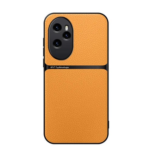 Funda para Teléfono Honor 100 Pro con Tapa Magnética de Cuero Litchi y Protección Total (Amarillo)