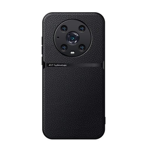 Funda para Teléfono Honor Magic4 Pro con Tapa Magnética de Cuero Litchi y Protección Total (Negro)