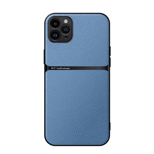 Funda para teléfono iPhone 11 Pro Max con tapa magnética de piel de Lichi a prueba de golpes (Azul)