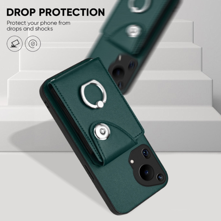 Funda para Teléfono Huawei Pura 70 Ultra con Tarjetero, Anilla y Cordón Largo (Verde)
