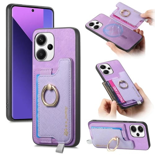 Funda para Teléfono con TaRJetero y Anillo de Cuero con Diseño Retro Magsafe Cross para Redmi Note 13 Pro+ (Morado)