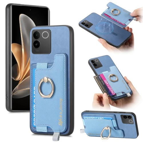 Funda para Teléfono con TaRJetero y Anillo de Cuero con Diseño Retro Magsafe Cross para Vivo S17E / Iqoo Z7 Pro / T2 Pro (Azul)
