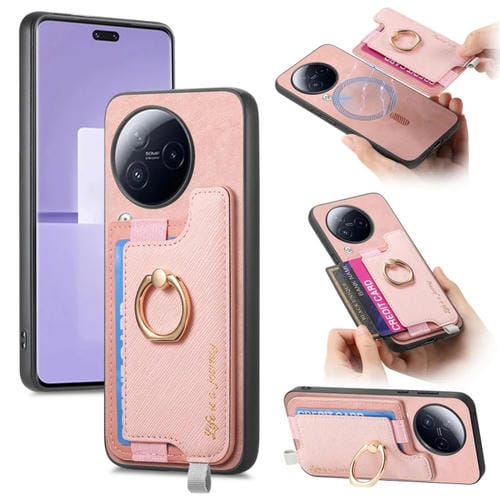 Funda para Teléfono con TaRJetero y Anillo de Cuero con Diseño Retro Magsafe Cross para Xiaomi Civi 3 5G (Rosa)