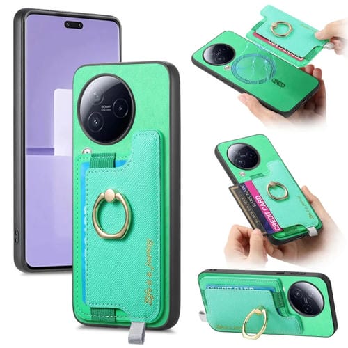 Funda para Teléfono con TaRJetero y Anillo de Cuero con Diseño Retro Magsafe Cross para Xiaomi Civi 3 5G (Verde)