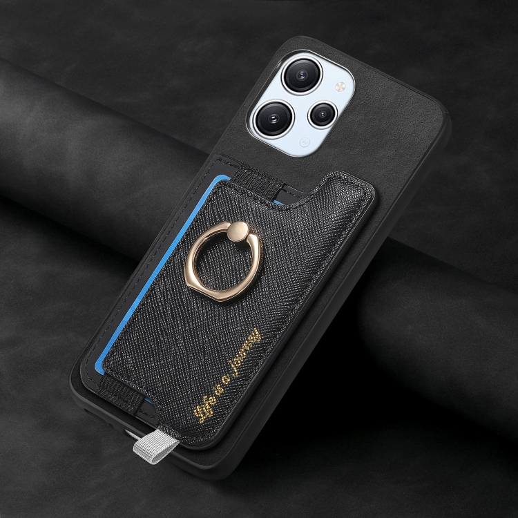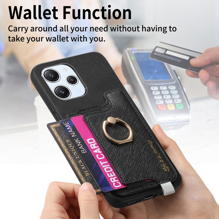 Funda para Teléfono con TaRJetero y Anillo de Cuero con Diseño Retro Magsafe para Redmi Note 12 Turbo/Poco F5 5G (Negro)