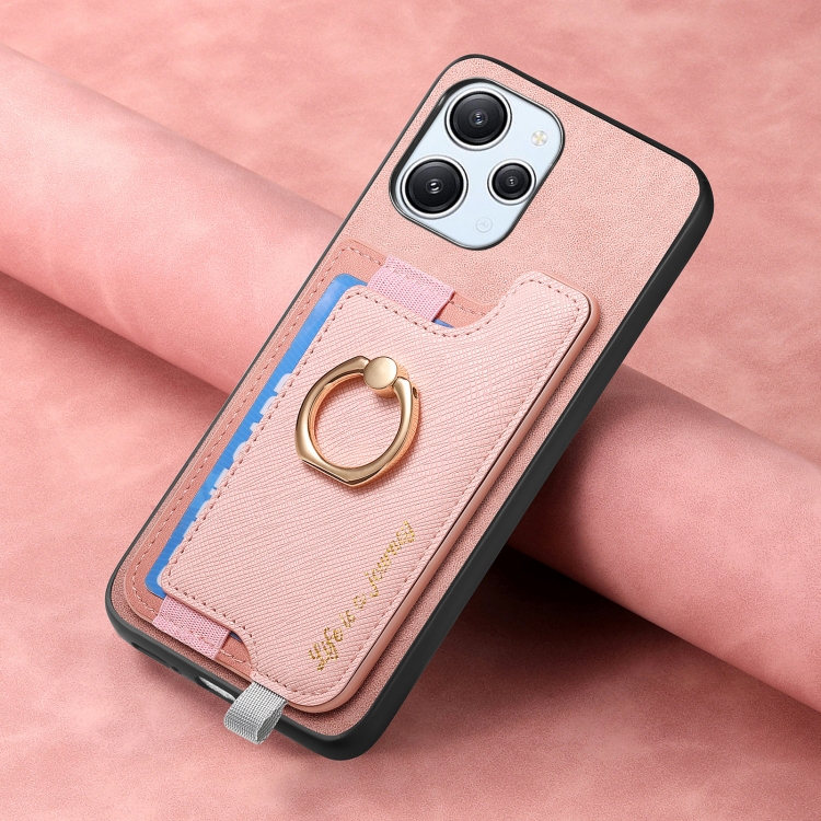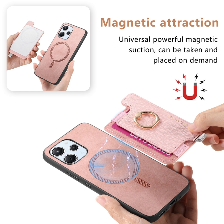 Funda para Teléfono con TaRJetero y Anillo de Cuero con Diseño Retro Magsafe para Xiaomi Redmi Note 13 4G (Rosa)