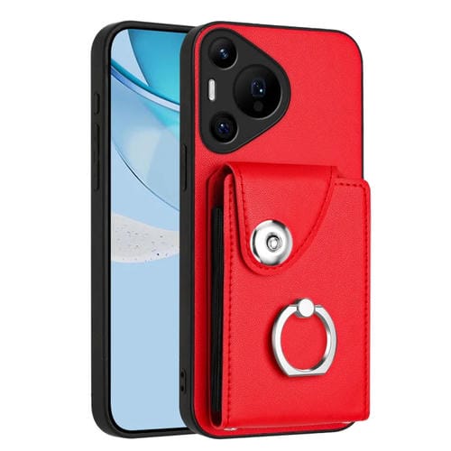 - 1x Funda para Teléfono Huawei Pura 70 Pro y 70 Pro+ con Tarjetero y Anillo (Roja)