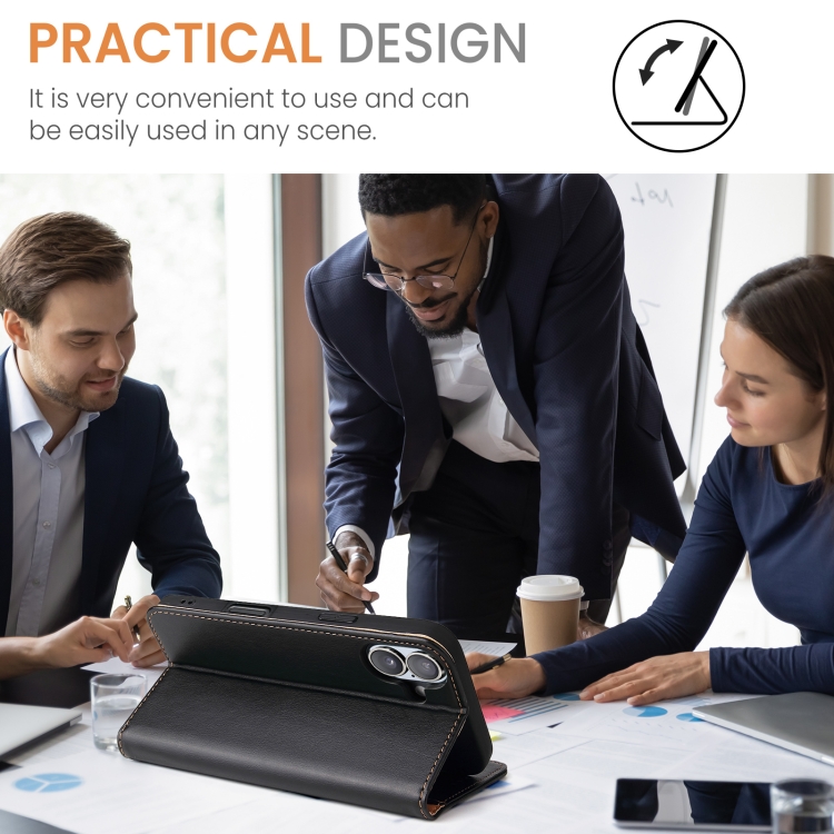 Funda para Teléfono Fierre Shann PU Cuero Genuino para iPhone 16 (Negro)