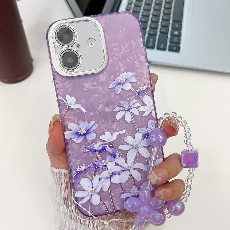 Funda para teléfono TPU iPhone 16 textura flores plantas galvanizadas (Flores Lilas)