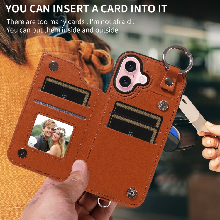 Funda para Teléfono Apple iPhone 16 Textura Rómbica Cordón Corto (Marrón)