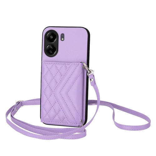 Funda para Teléfono con Textura Rómbica y Rfid para Redmi 13C 4G Global con Cordón Largo (Morado Claro)