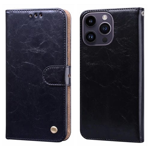 Funda para Teléfono Cuero iPhone 15 Pro Tapa Prueba de Golpes Textura Cera de Aceite (Negro)