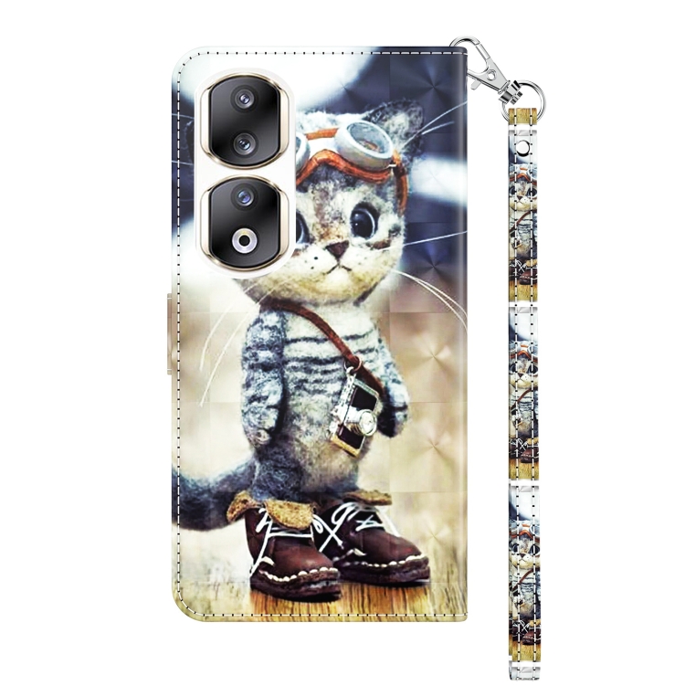 Funda para Teléfono Honor 90 Pro Cuero Pintado 3D Gato Travieso