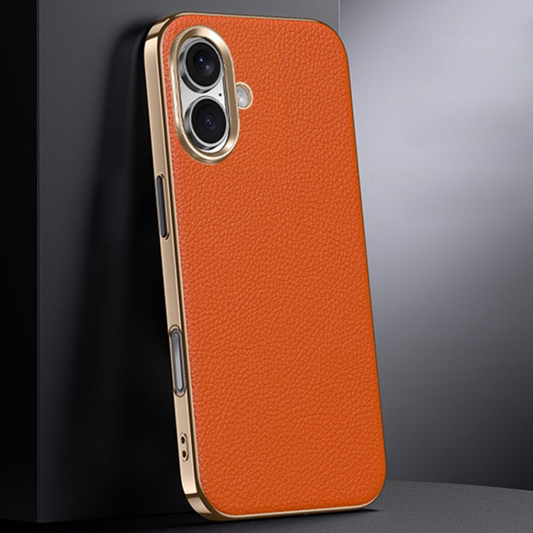 Funda para Teléfono PC Galvanizada Cuero de Vaca iPhone 16 (Naranja)