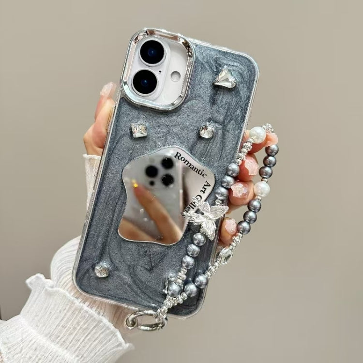 Funda para Teléfono TPU con Cadena y Pulsera con Espejo para iPhone 16 (Gris Plateado)