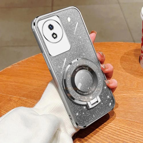 Funda para Teléfono de TPU con Soporte Redondo con Purpurina Degradada Plateada para Vivo Y02/Y11 2023 (Plateada)