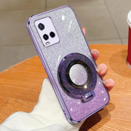 Funda para Teléfono de TPU con Soporte Redondo con Purpurina y Degradado Chapado para Vivo Y21/Y21S (Morado)