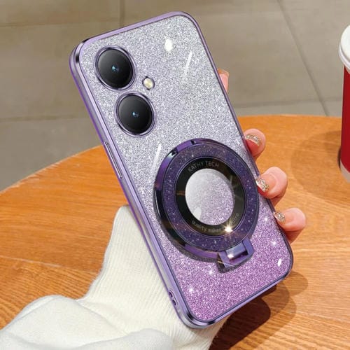 Funda para Teléfono de TPU con Soporte Redondo y Purpurina Degradada Chapada para Vivo Y35+ / Y27 4G (Púrpura)