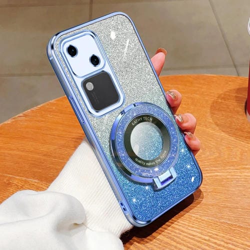 Funda para Teléfono de TPU con Soporte Redondo y Purpurina Degradada Plateada para Vivo S18 (Azul Sierra)