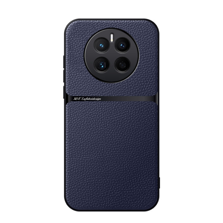 Funda para Teléfono Huawei Mate 50 de Piel de Lichi con Cobertura Total Magnética a Prueba de Golpes (Azul Marino)