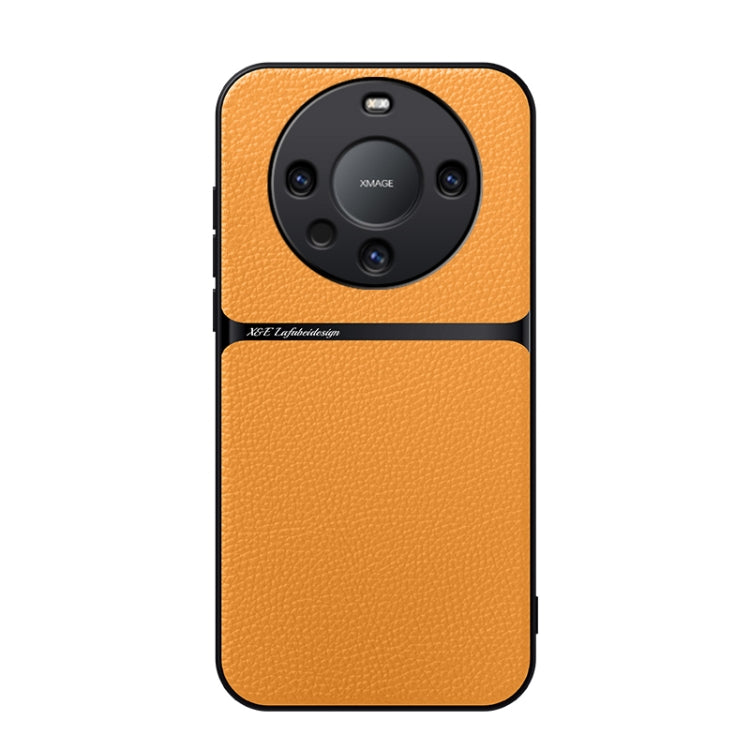 Funda para Huawei Mate 60 Pro de Piel de Lichi con Cobertura Total Magnética y Antigolpes (Amarilla)