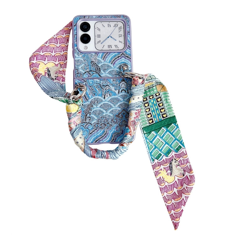 Funda para Teléfono Huawei Nova Flip Bordado Nubes Cobertura Total con Bufanda y Pulsera (Azul)
