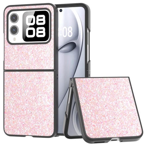 - 1x Funda para Teléfono Huawei Nova Flip con Marco Negro y Purpurina de Colores (Rosa)