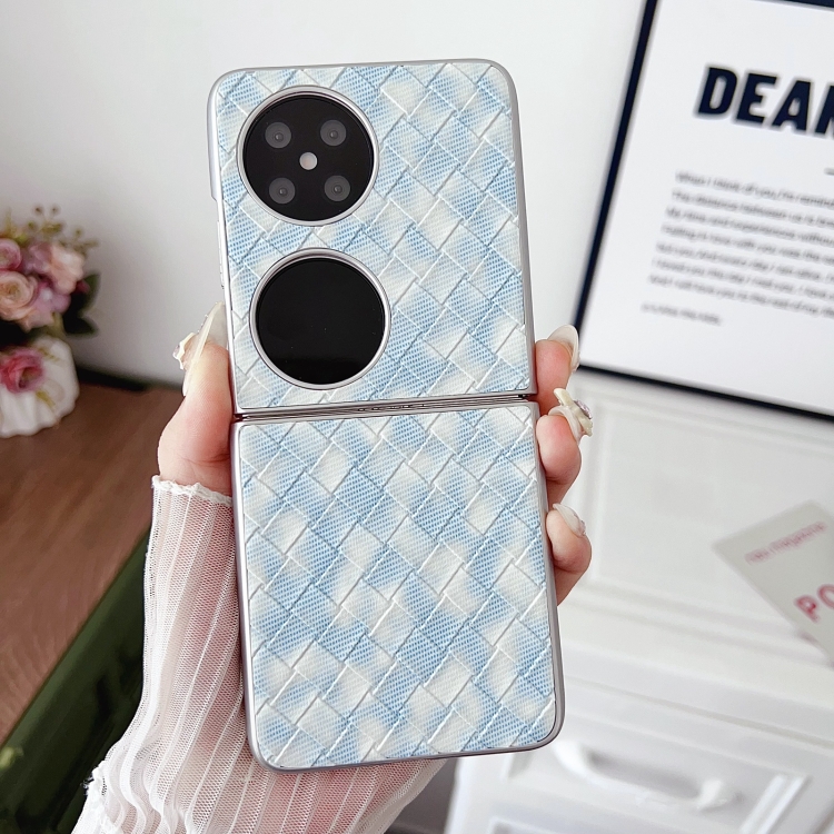 Funda para Teléfono Huawei P50 con Patrón de Tejido y Cobertura Total (Azul)
