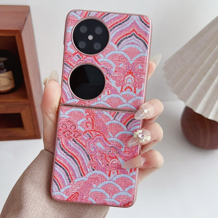 Funda para Teléfono Huawei Pocket 2 con Bordado de Nubes Propicias y Cobertura Total (Roja)