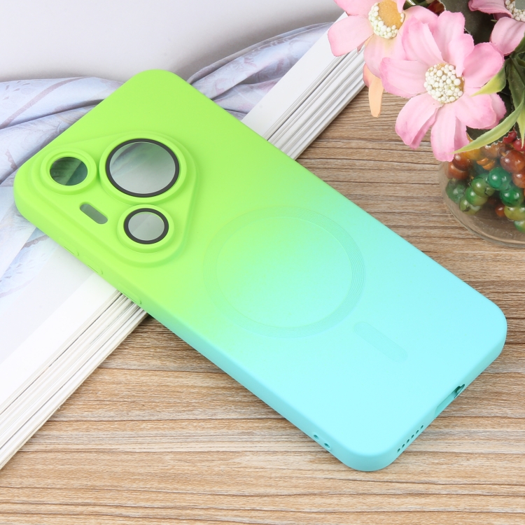 Funda para Teléfono Huawei Pura 70 Pro Silicona Líquida Degradado y Magsafe (Azul Cian)