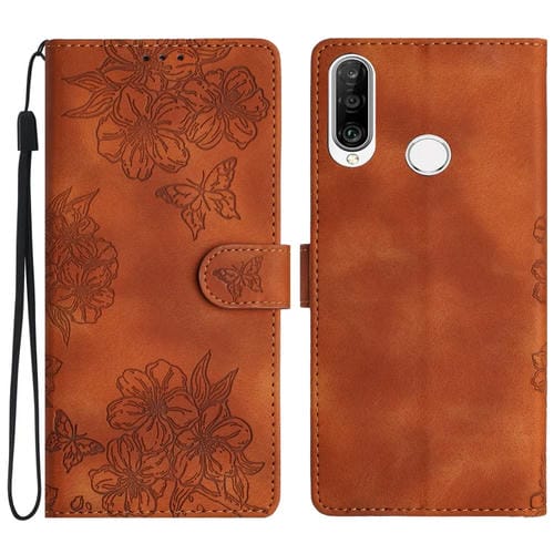- 1x Funda para Teléfono Huawei Y6P con Diseño Mariposa y Flor de Cerezo en PU (Marrón)