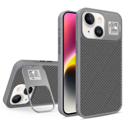 Funda para Teléfono Magsafe Fibra de Carbono con Soporte Plegable para iPhone 14 (Gris)
