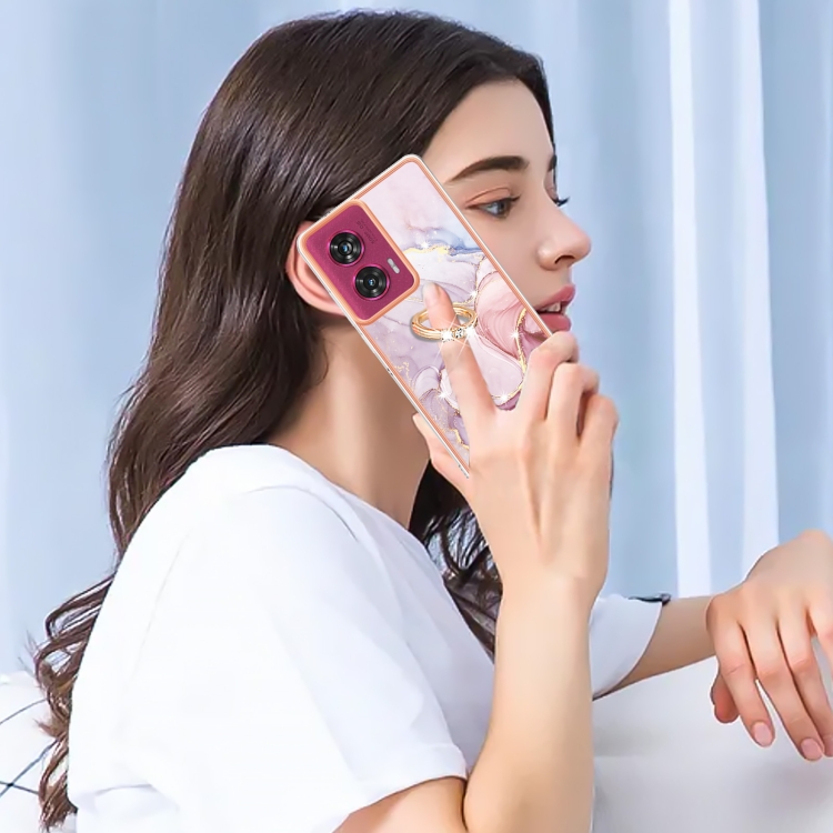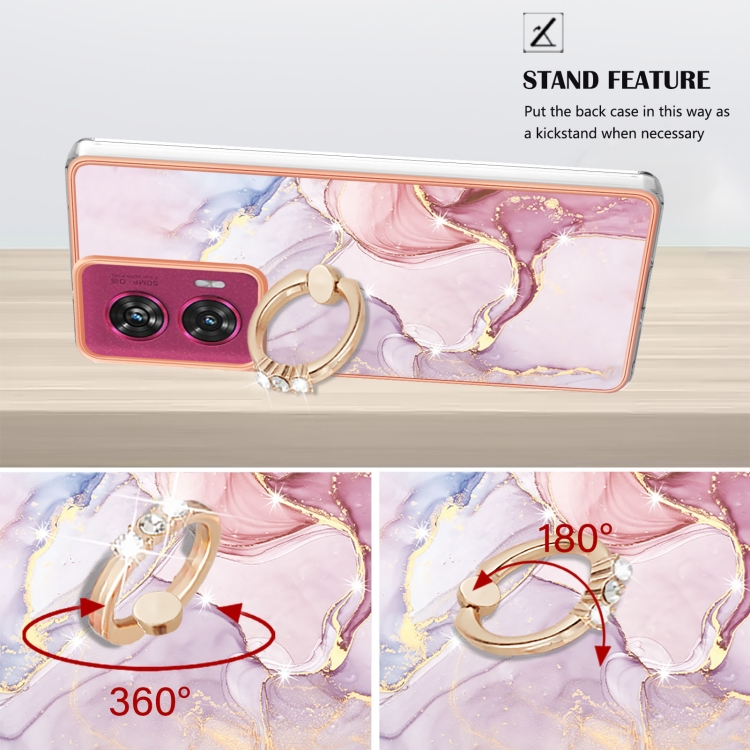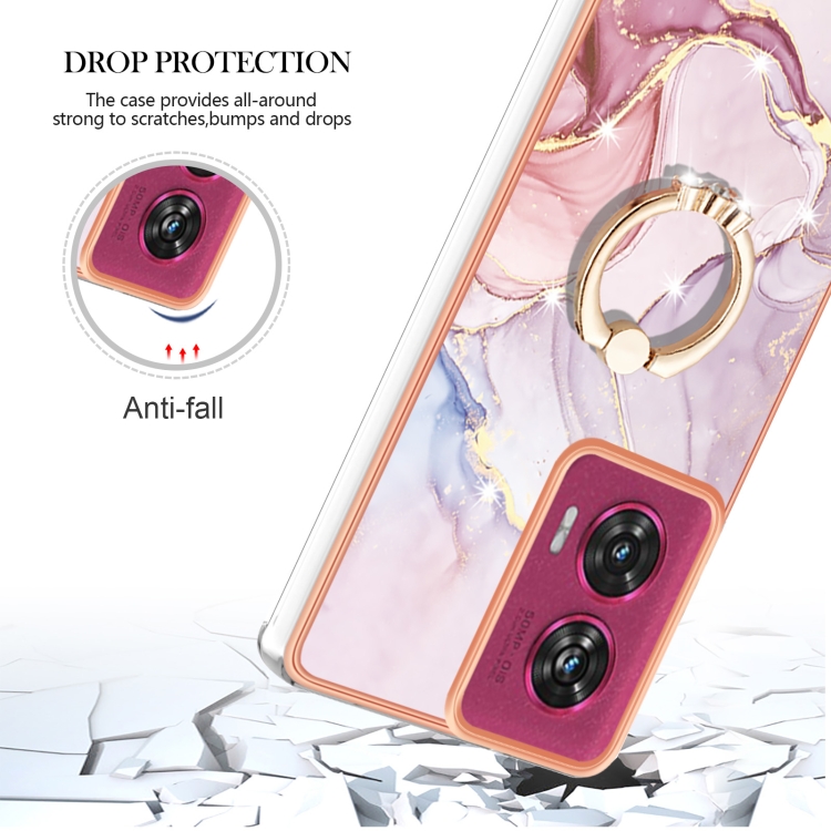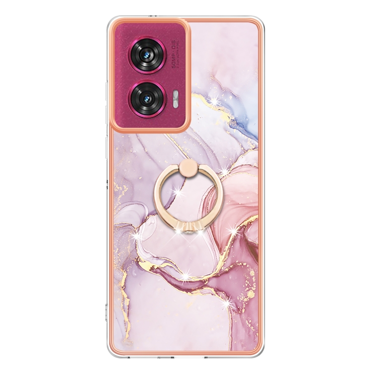 Funda para Motorola Edge 50 Fusion con Galvanoplastia Mármol IMD TPU y Soporte Anillo (Oro Rosa)