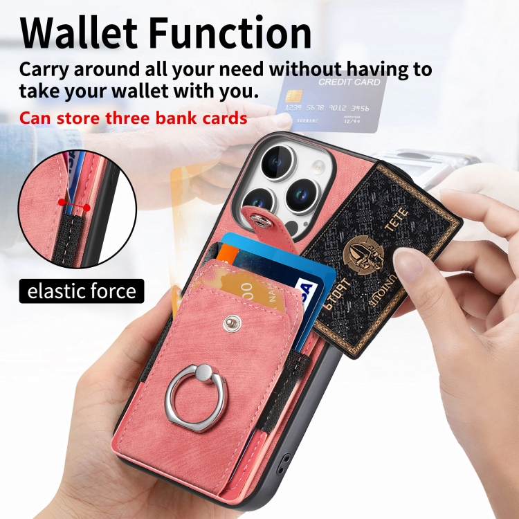 Funda para Teléfono Tipo Billetera con Anillo y Tarjetero para iPhone 16 Pro (Rosa)
