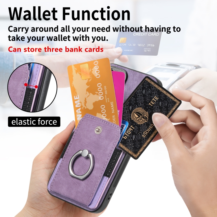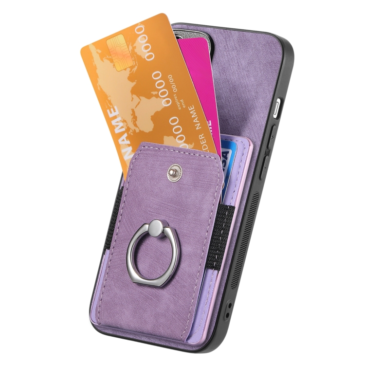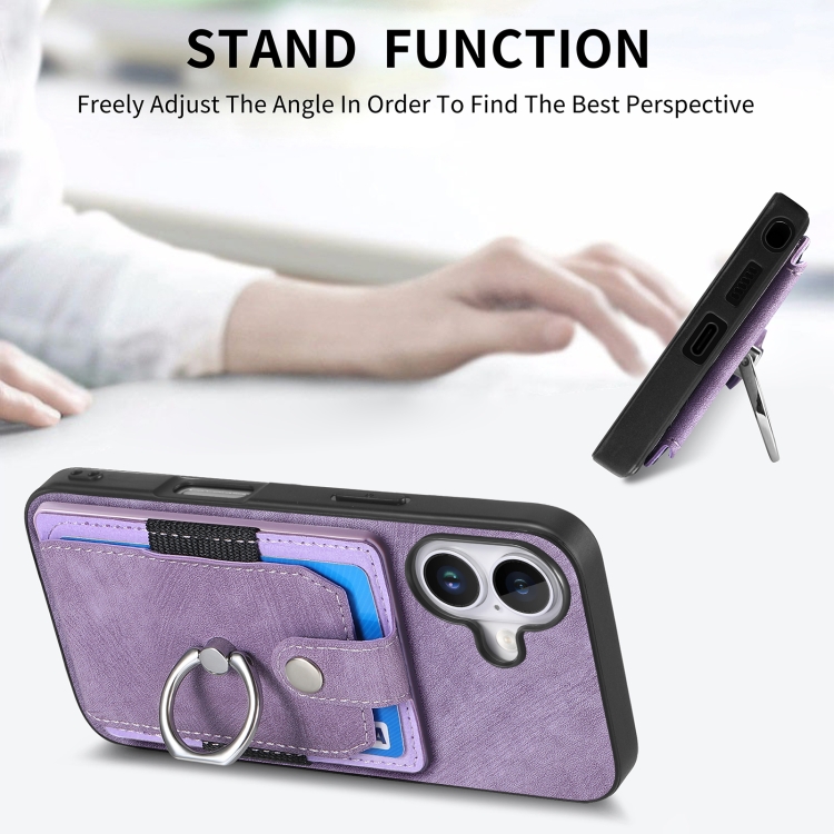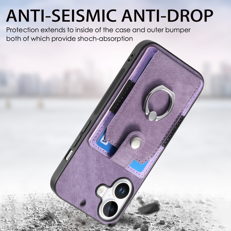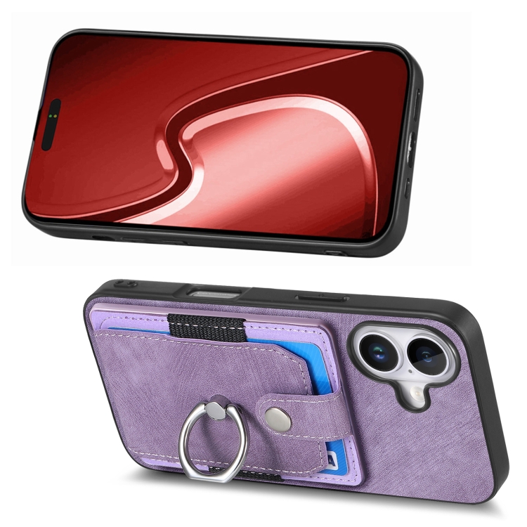 Funda para Teléfono Tipo Billetera con Anillo y Tarjetero Estilo Retro para iPhone 16 (Morado)