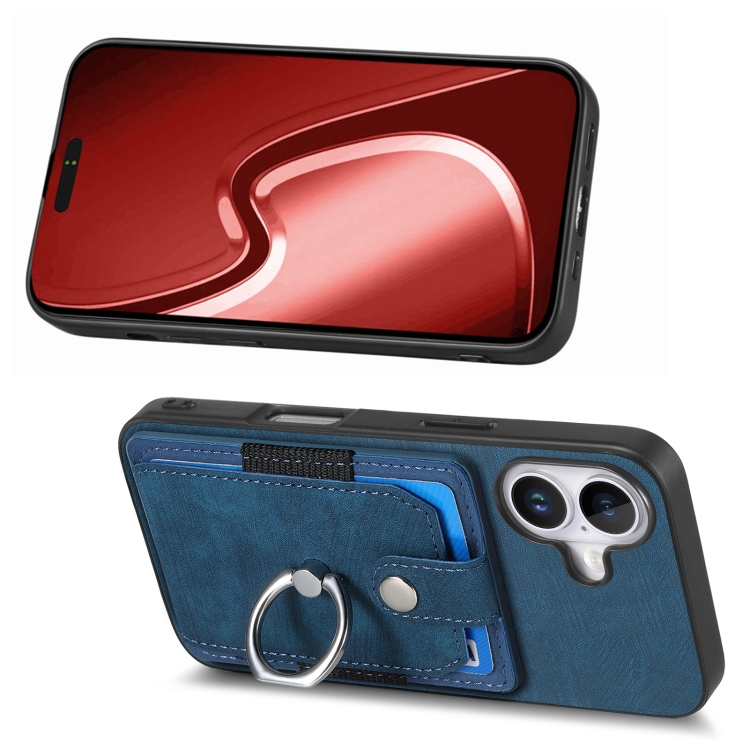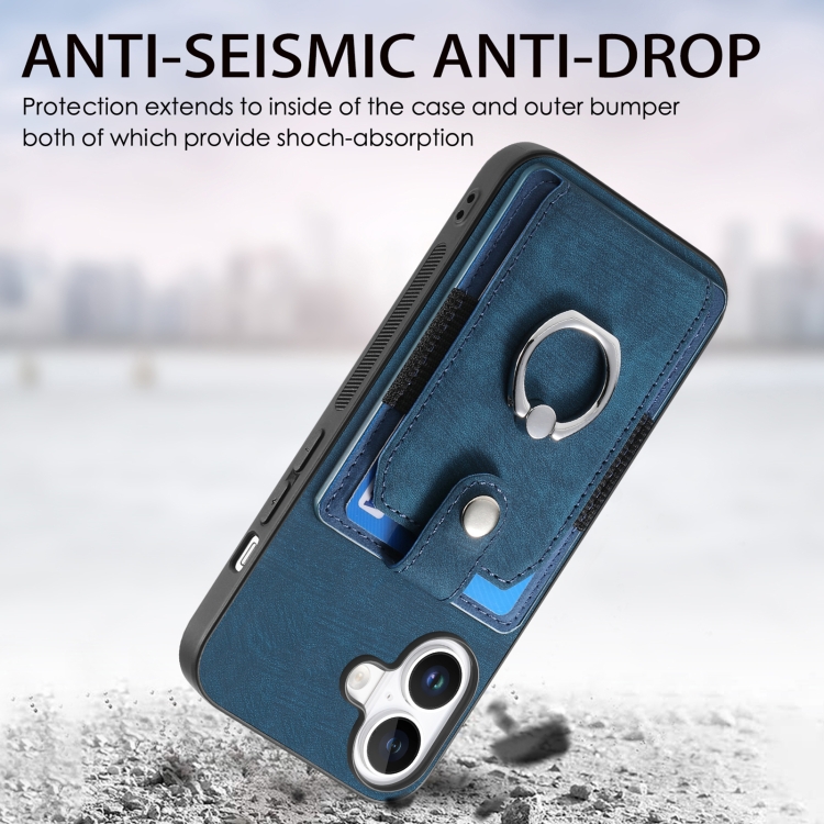 Funda para Teléfono Tipo Billetera con Tarjetero y Anillo para iPhone 16 (Azul)
