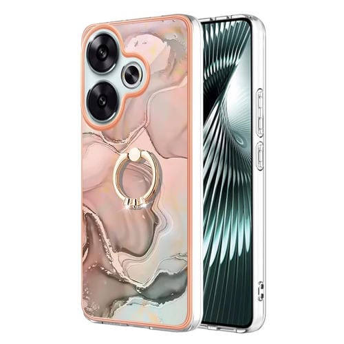 Funda para Teléfono Xiaomi Poco F6 5G con Revestimiento de Mármol Galvanizado y Doble Cara Imd con Anillo (Oro Rosa 015)