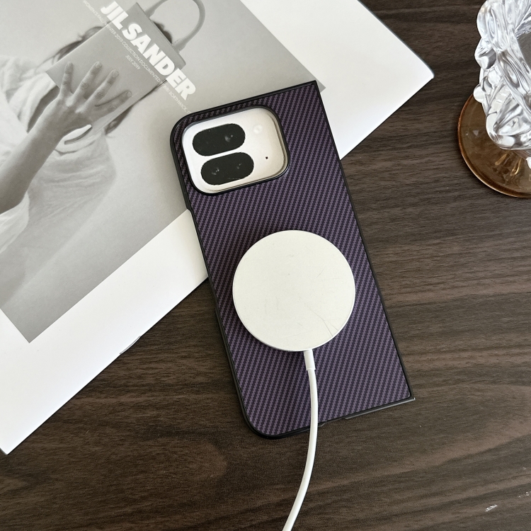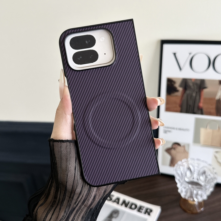Funda Plegable Cuero y Fibra de Carbono Google Pixel 9 Pro con Función Magsafe (Morado)