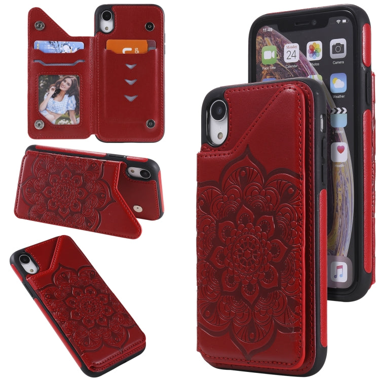 Funda Protectora para iPhone Xr con Soporte Ranuras Tarjetas y Marco de Fotos (Rojo)