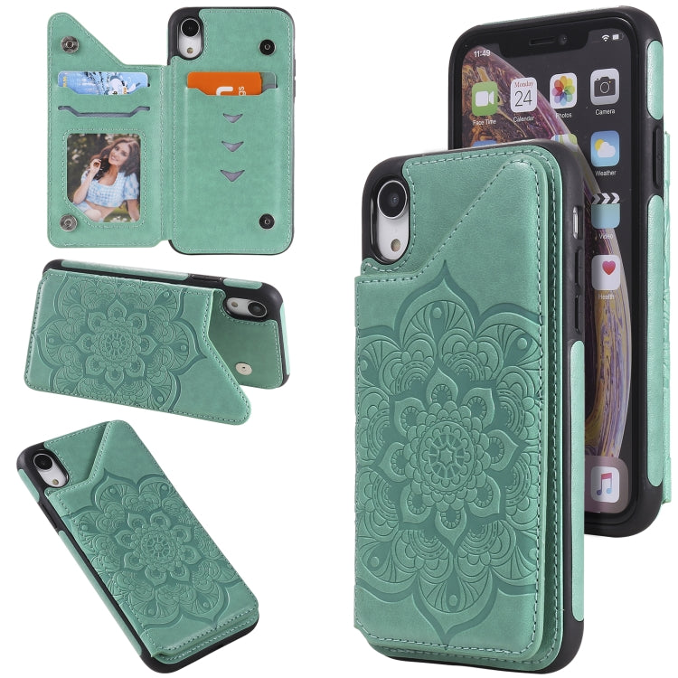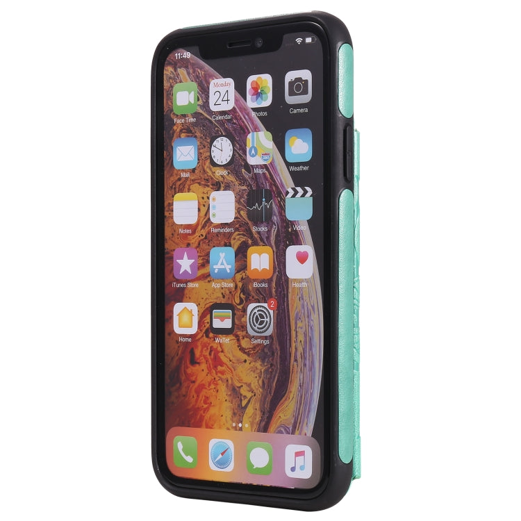 Funda Protectora para iPhone Xr con Soporte, Ranuras para Tarjetas y Marco de Fotos (Verde)