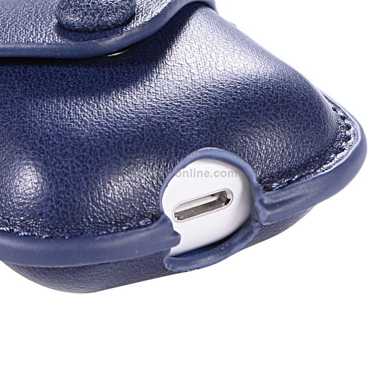 Funda Protectora Cuero PU Para Auriculares Inalámbricos Apple Airpods 1/2 Con Hebilla (Azul)