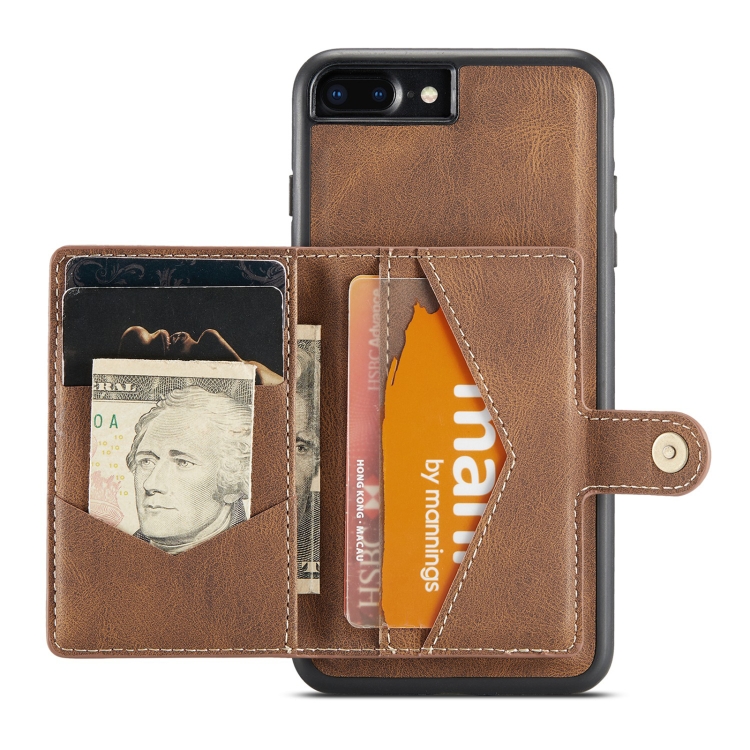 Funda Protectora Desmontable Magnética Jeehood con Billetera y Soporte para iPhone 8 Plus y 7 Plus (Marrón)