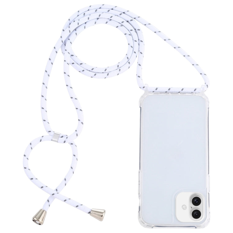 Funda Protectora para iPhone 16 Acrílico Transparente a Prueba de Golpes con Cordón (Grano Rugoso Blanco y Gris)