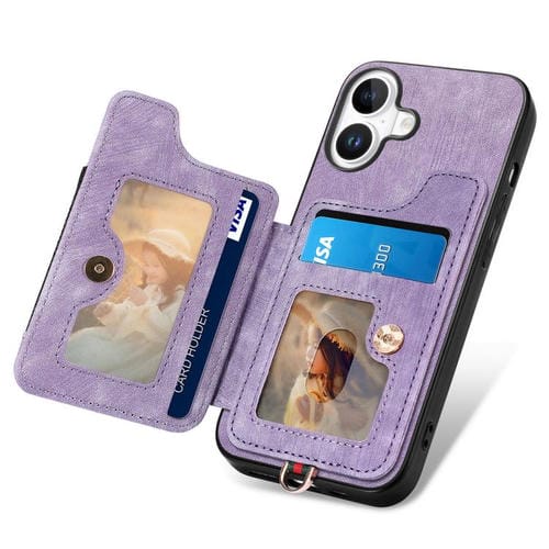 Funda tipo cartera con anillo multitarjeta y diseño retro para iPhone 17 (morado)