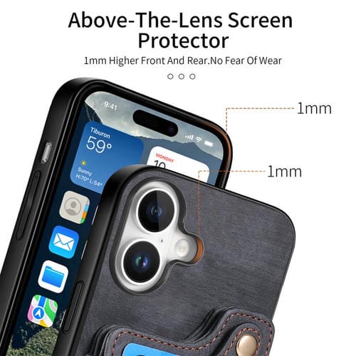 Funda tipo cartera con anillo multitarjeta y diseño retro para iPhone 17 (negra)