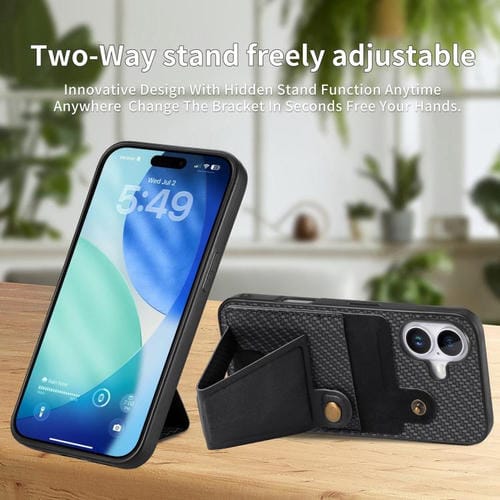 Funda tipo cartera de fibra de carbono con tarjetero en forma de K para iPhone 17 (negra)