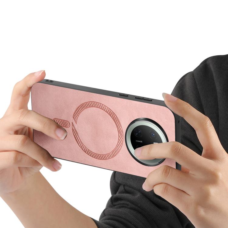 Funda Trasera PU Magsafe para Huawei Mate 70 (Rosa) Color Sólido Retro