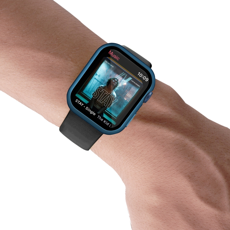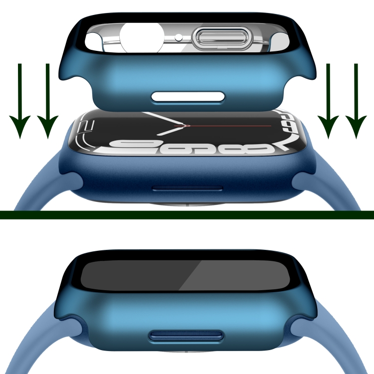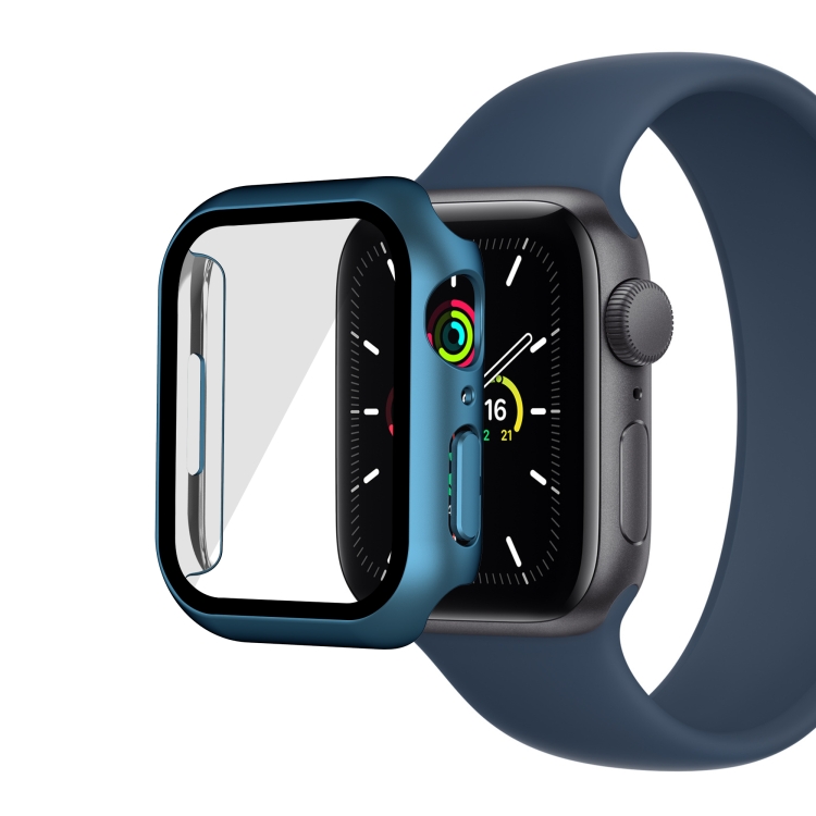 Galvanoplastia Mate PC + Caja Vidrio Templado para Apple Watch Series 8/7 45mm (Aluminio Azul)