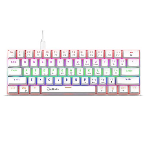 • 1x Teclado Mecánico Hxsj V900 61 Teclas Cableado con Iluminación Efecto (Blanco)