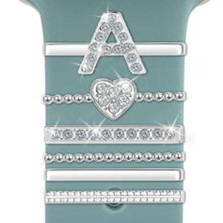 Juego de 6 correas de silicona universales para reloj inteligente, accesorios de metal decorativos, tamaño A (plata)